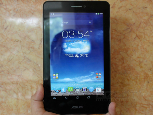 You will find the Asus logo in the front bottom of the device, apart from being dominated by a 7-inch IPS display. The display, itself, has been surrounded by a wide, black bezel with glossy finish. The right edge of the device features the volume rocker and power buttons, while on top, there's the Micro-USB port and 3.5mm headset jack.