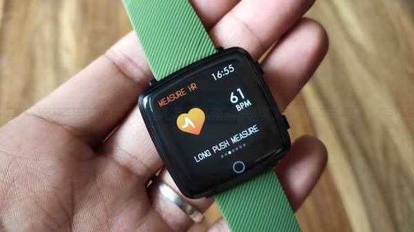 The rectangular watch dial feels very sturdy. It is IP68 waterproof and dustproof. We have got the unit with green colored straps that offer a sporty look and feel. If you prefer a more subtle and professional look, go for the all-black variant.