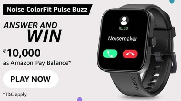 The Amazon Noise ColorFit Pulse Buzz Quiz contest is now live on the mobile app of the online retailer. During this contest, it is possible for as many as 10 fortunate winners to get Rs. 10,000 cash prize in the form of Amazon Pay Balance. Let's take a look at more details of the Amazon Noise ColorFit Pulse Buzz Quiz contest from here.