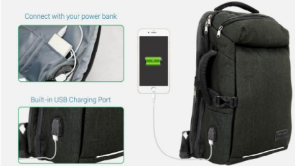 This smart bag has a charging port.
